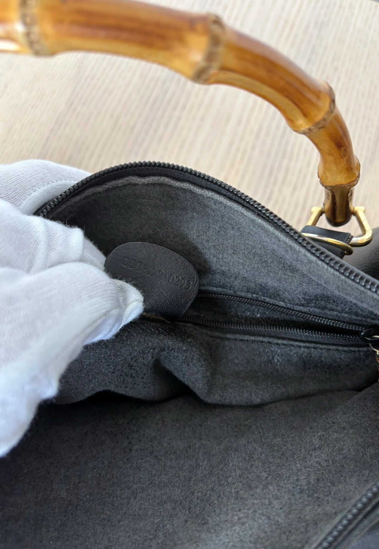 Vintage Gucci handbag with timeless style. Crafted in supple black leather, it features bamboo handles, an emblematic detail of the Gucci Bamboo bag line.