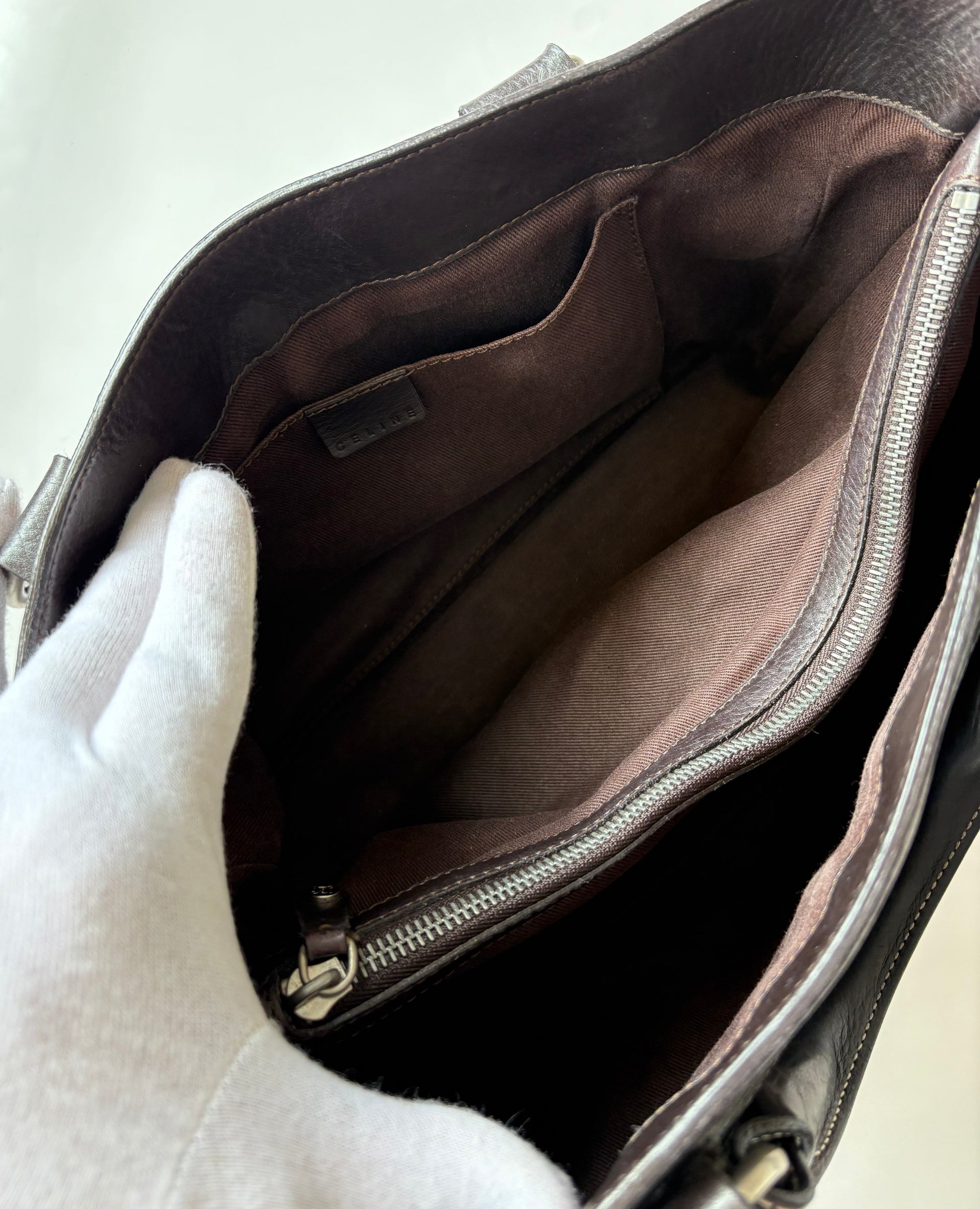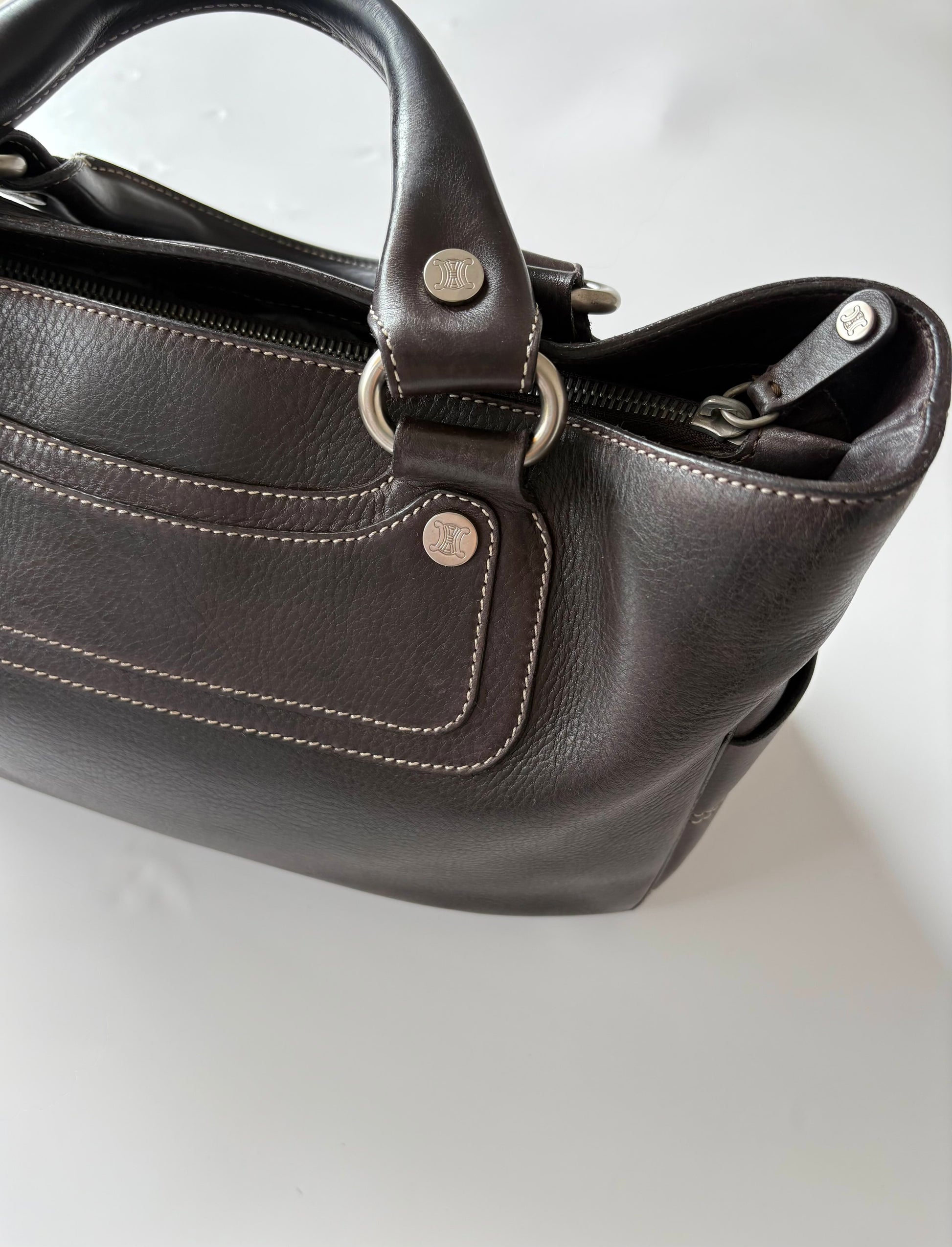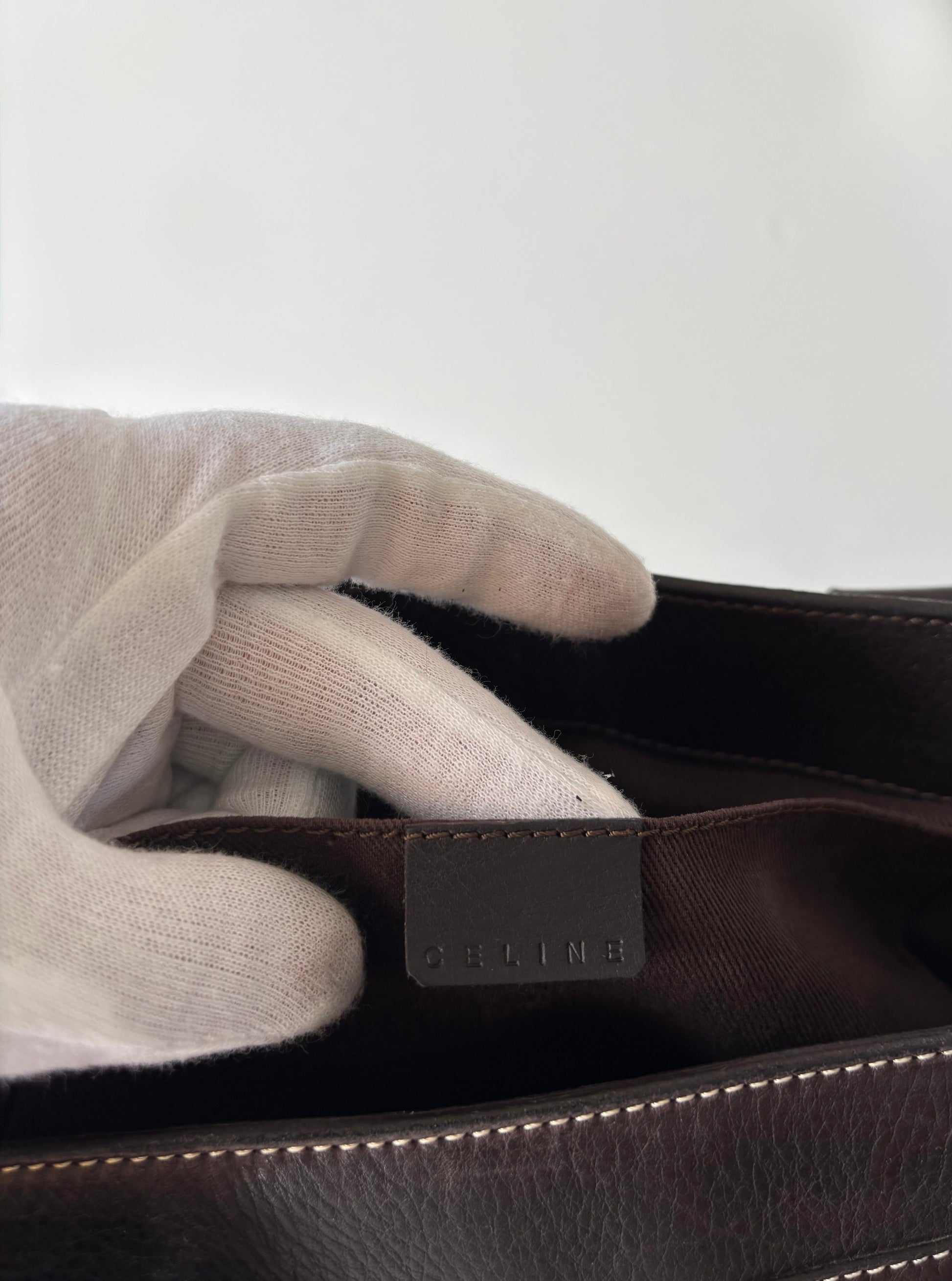 Vintage Celine Boogie Bag in Dark Brown Leather